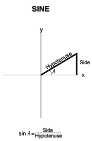| Sine means the relationship between the side opposite or rise of a triangle and its Hypotenuse |